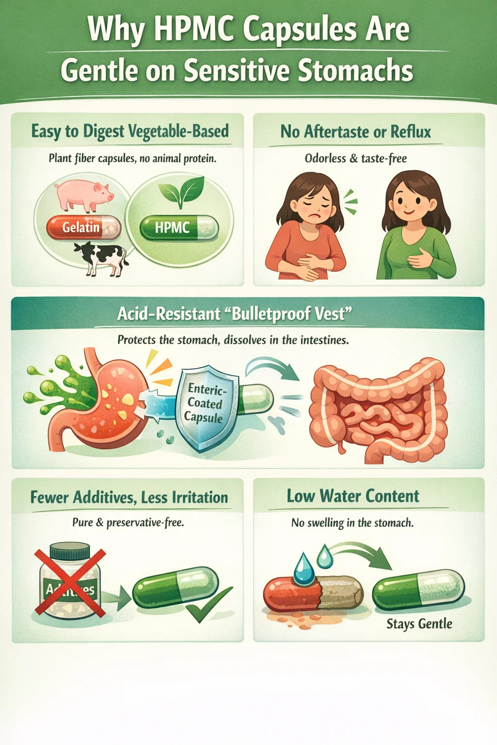 Let me give you the answer directly: HPMC capsules are indeed more stomach-friendly for sensitive stomachs.