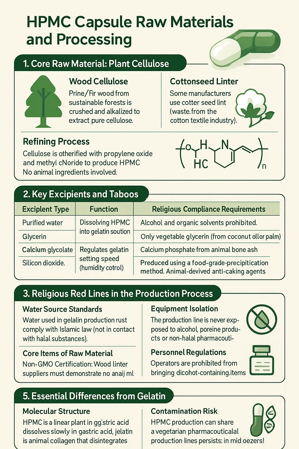 Contamination Risk: HPMC production can share a vegetarian pharmaceutical production line; the risk of residual porcine DNA in gelatin production lines persists.