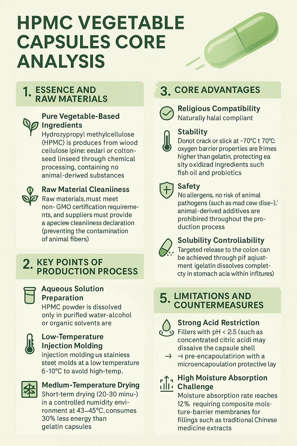 **Pure vegetable-Based Ingredients:** Hydroxypropyl methylcellulose (HPMC) is produced from wood cellulose (pine, cedar) or cottonseed linseed through chemical processing, containing no animal-derived substances.